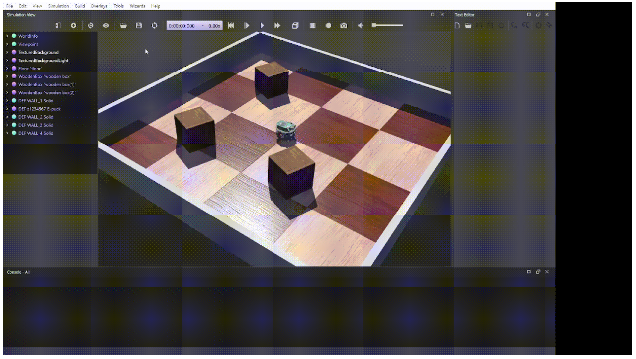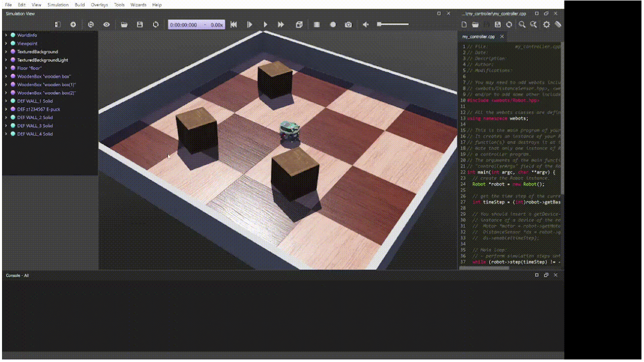 The Webots simulation can also be fast-forwarded, reversed, or reset.